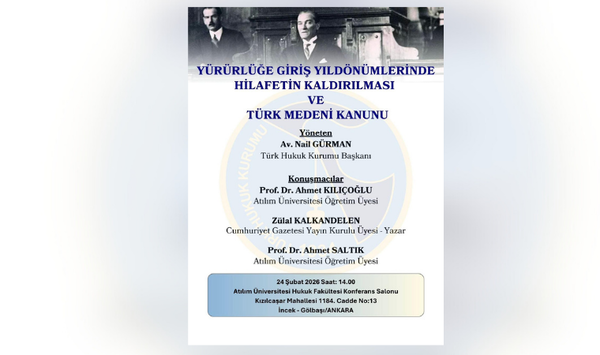 Türk Hukuk Kurumu, “Yürürlüğe Giriş Yıldönümlerinde Hilafetin Kaldırılması ve Türk Medeni Kanunu” konferansını 24 Şubat’ta gerçekleştirecek.